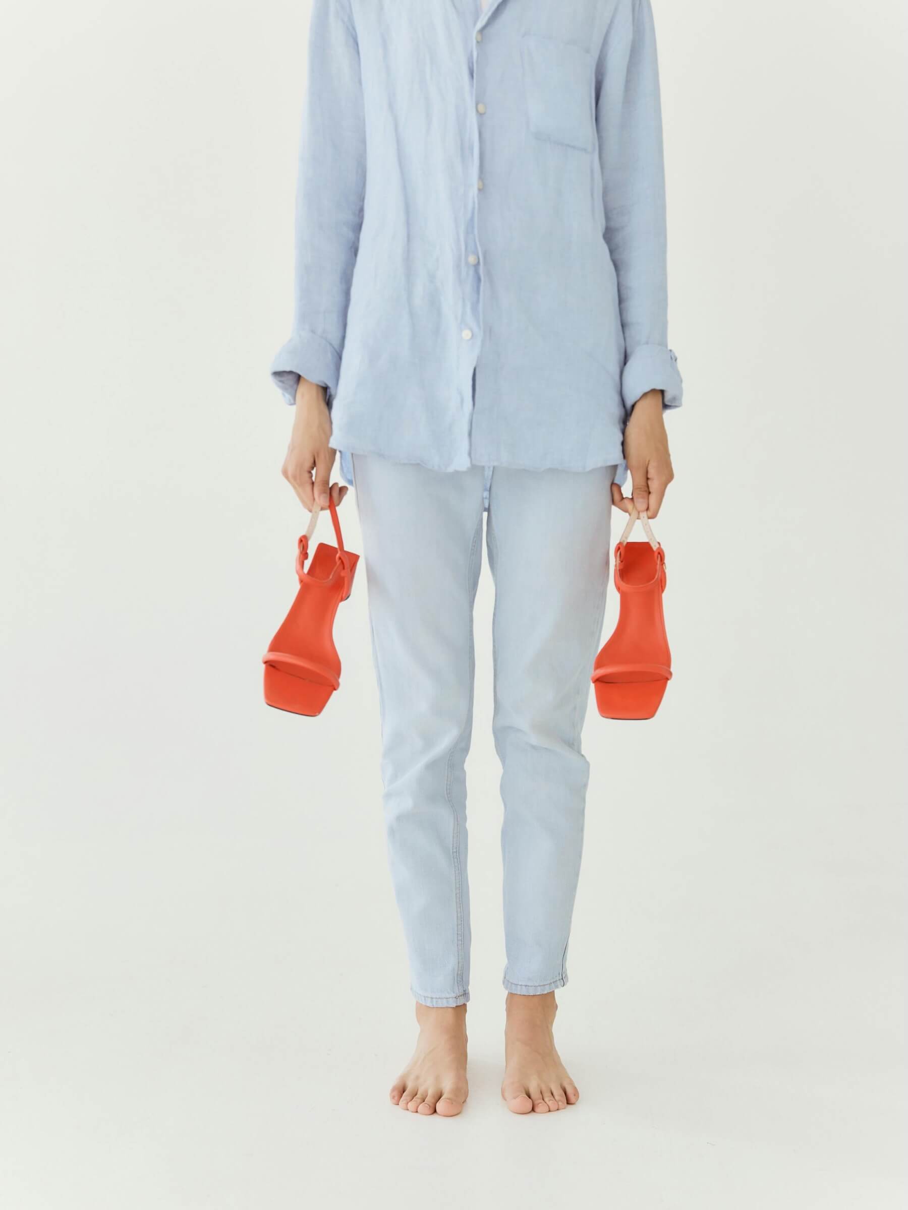 - Open heeled sandals with a square toe